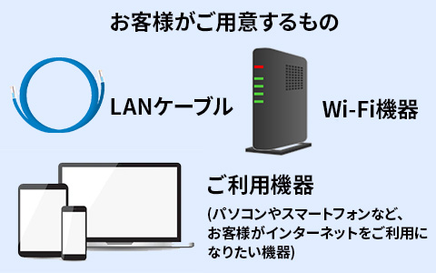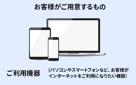 パスコンやスマートフォンなどお客様がインターネットをご利用になりたい環境に接続してください