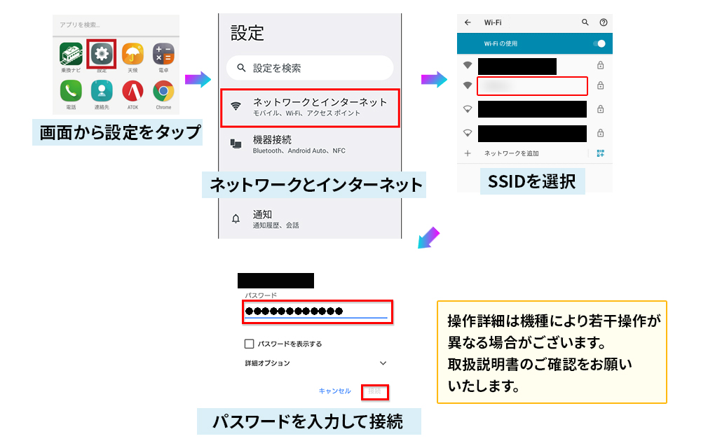 ②アパートWi-FiのSSIDを選択してセキュリティを入力して接続。